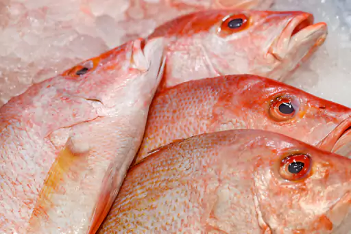 Ikan kakap merah segar, ideal untuk dipanggang, digoreng, atau diolah dalam masakan tradisional Bali.