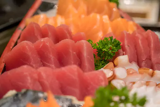 Tuna berkualitas tinggi, disajikan mentah untuk kelezatan sashimi yang autentik.